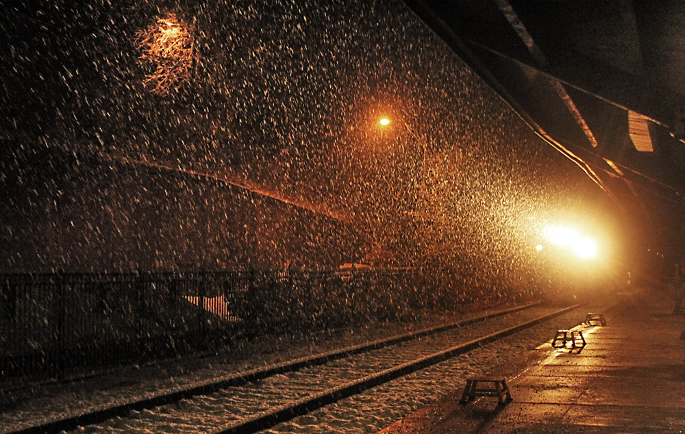 Caption: Pulling in to the Rhinecliff, NY Station on a rainy night. Canon DSLR