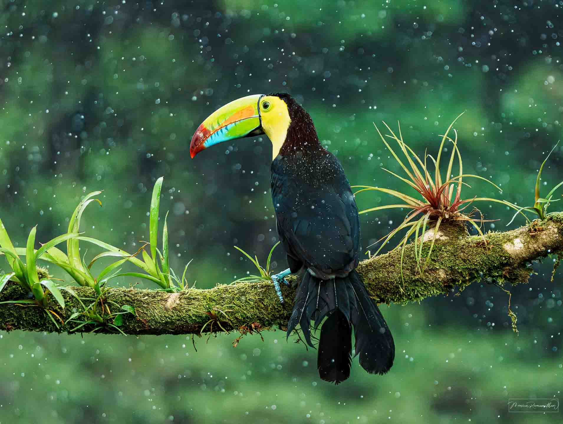 Caption: Toucan in the rain in Costa Rica ~ 223mm | f6.3 |1/6400 | ISO 3200