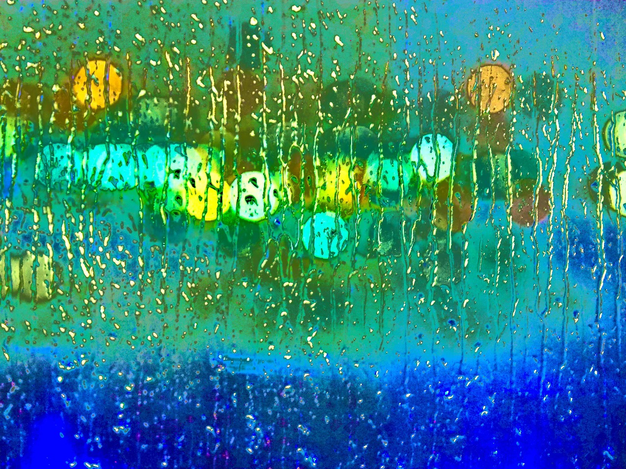 Caption: Nightlights Dancing in the Rain, Olympus M5 Mark II, ISO 4000, f 5.6, 1/10s