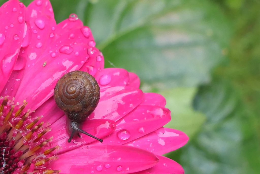Caption: Raindrops in the garden.