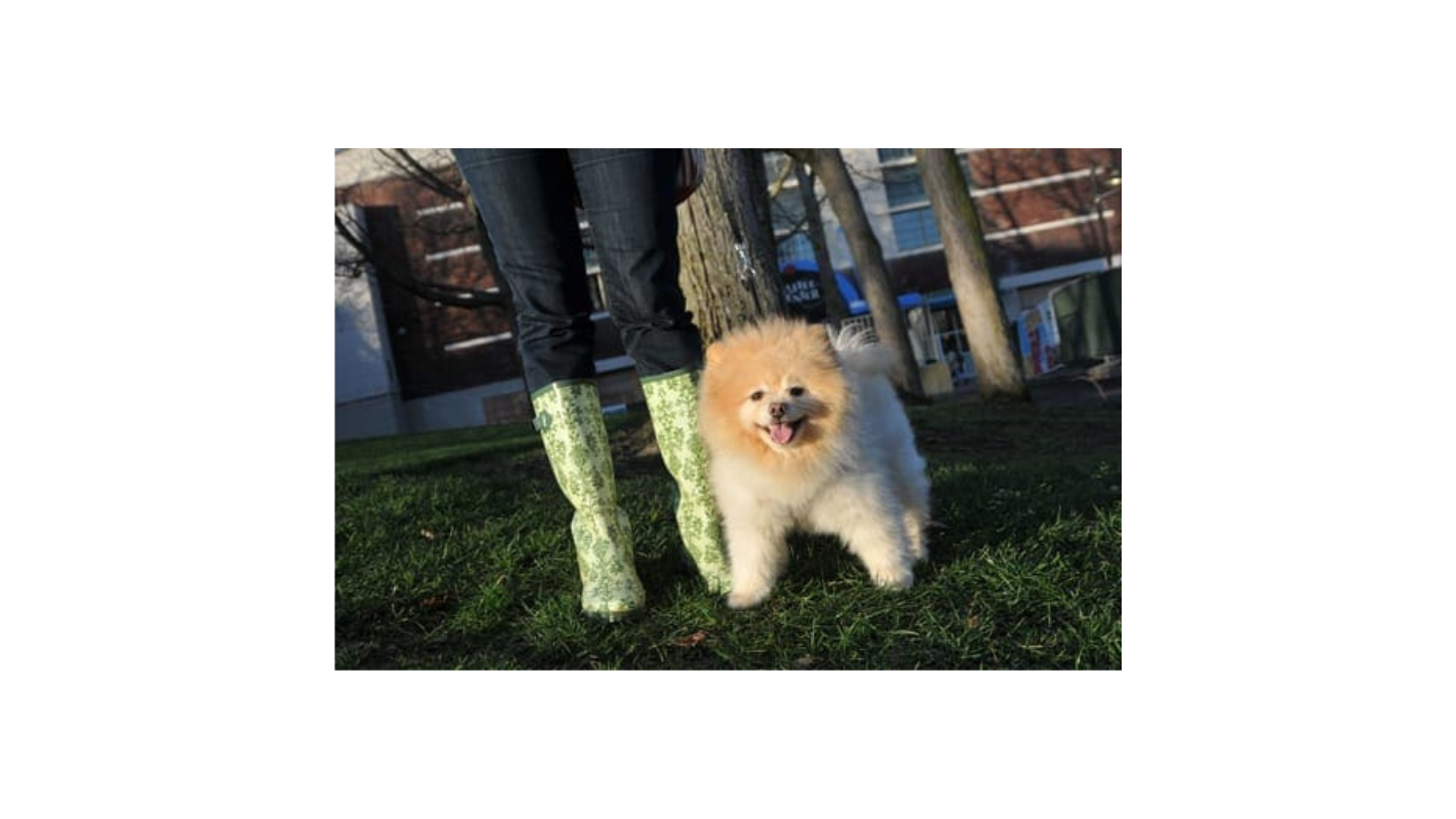 There are a number of large painted grounds that are photo ops in and of themselves, but the same saturated patterns can serve as the constant background to highlight a single skateboarder hotdogging with flips, spins, and turns. Try the large orange circle that is painted on the asphalt as the backdrop for a dog walker wearing a blue outfit, contrasting in color against the orange pattern of the ground artwork.