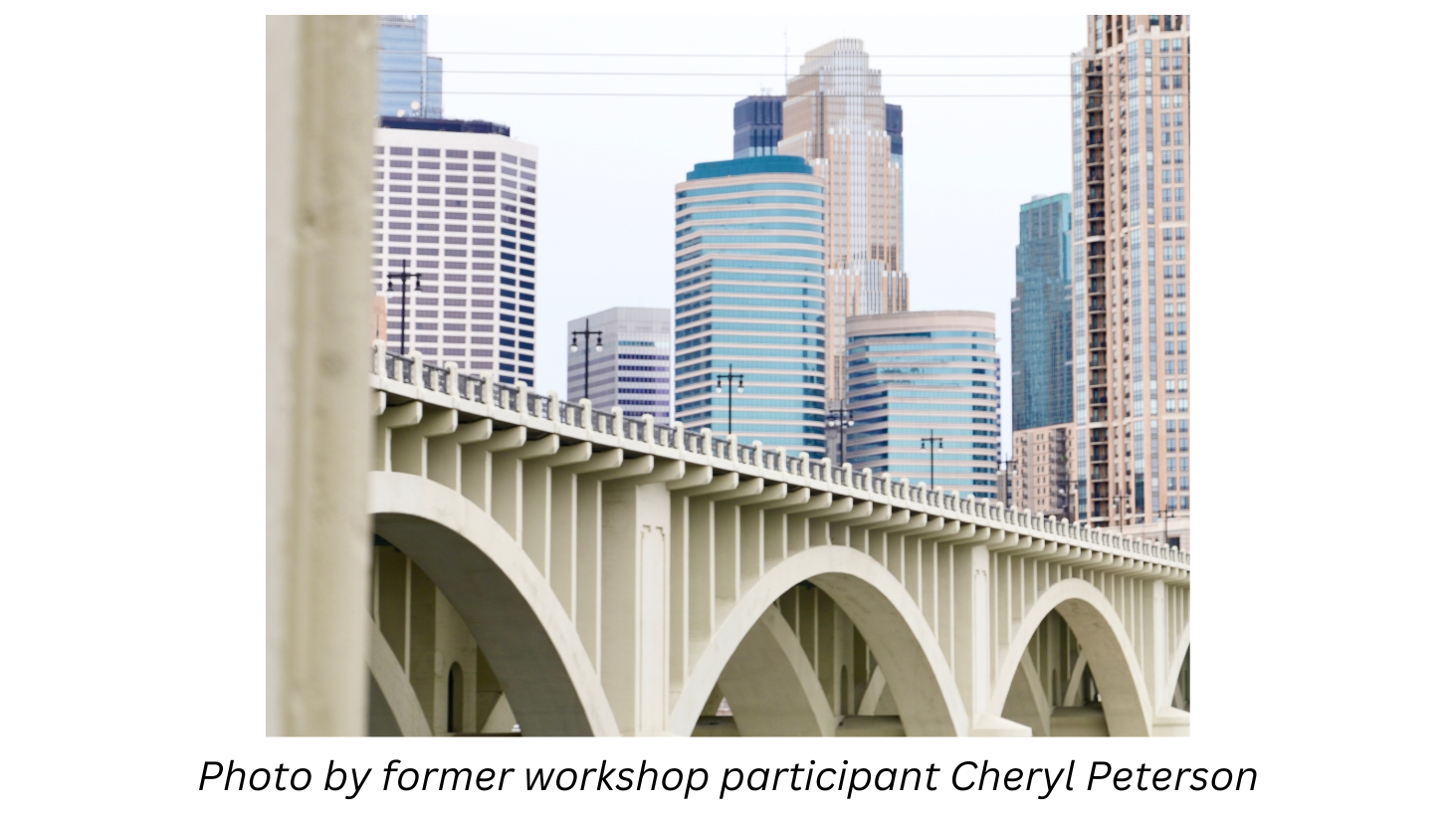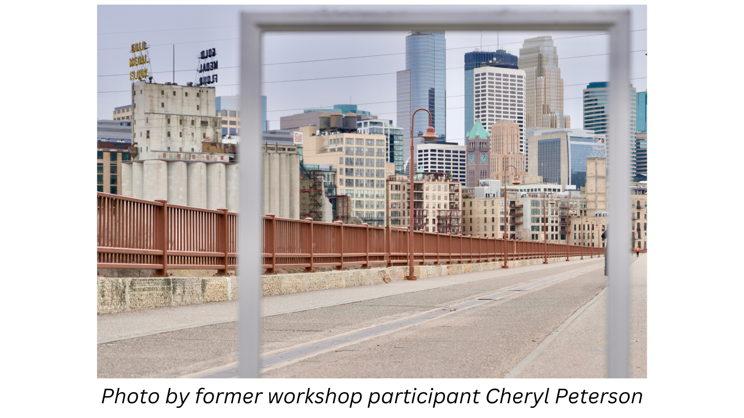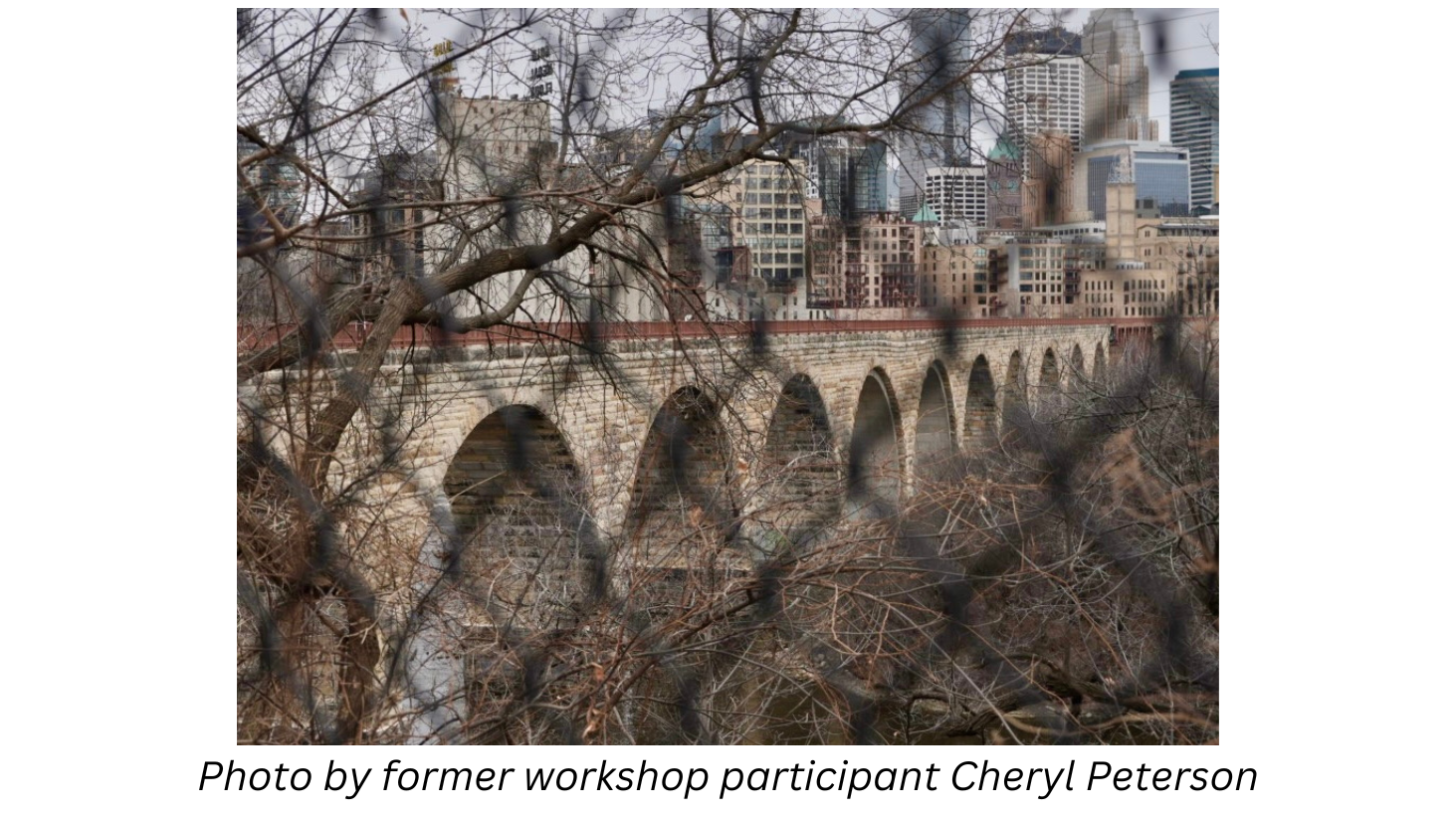 Join your DPA instructor at the Stone Arch Bridge for views of the Minneapolis skyline. We will also photograph the historic Mill City Ruins Park, Gold Medal Park, and the new home of the Guthrie Theater. We will discuss the use of circular polarizers, composition, and creative camera techniques. There are also some great spots to discuss portrait photography as well. Check below to see some of the beautiful photos captured by Tony’s students when a class was held in these locales in the recent past.